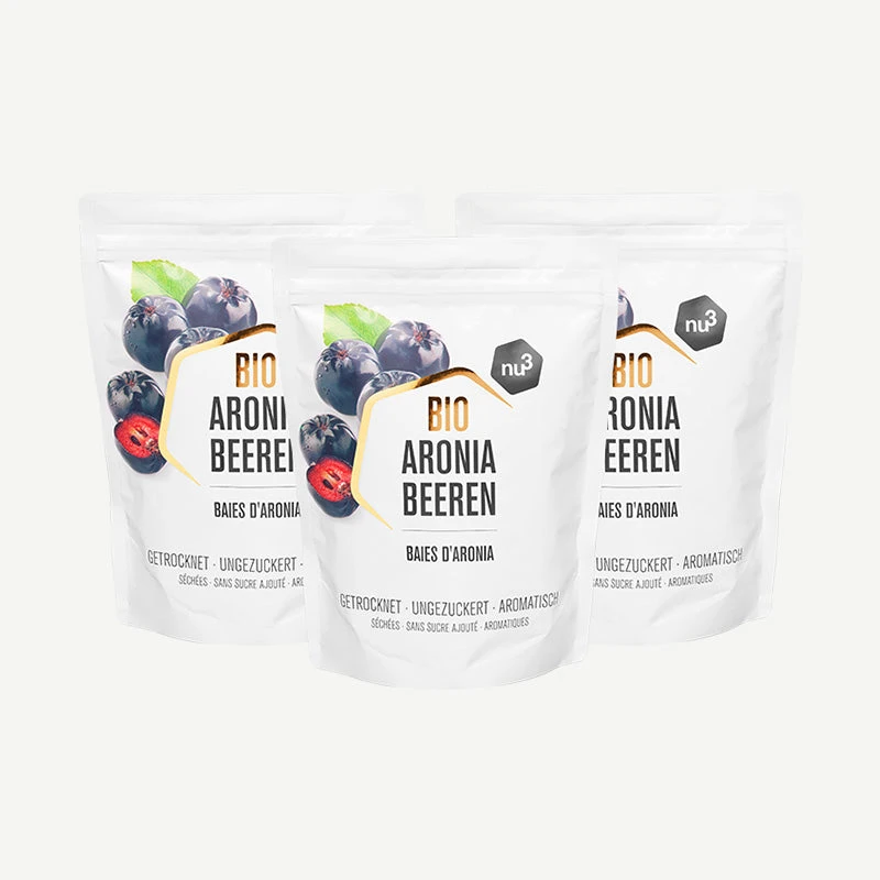 nu3 Baies d’Aronia Bio: Baies d’aronia bio fruitées séchées soigneusement, à commander à prix avantageux-nu3 Votre Expert Nutrition