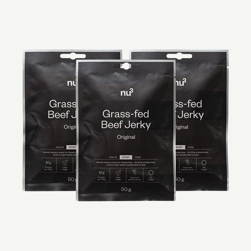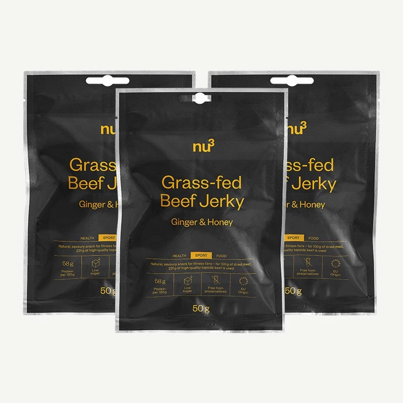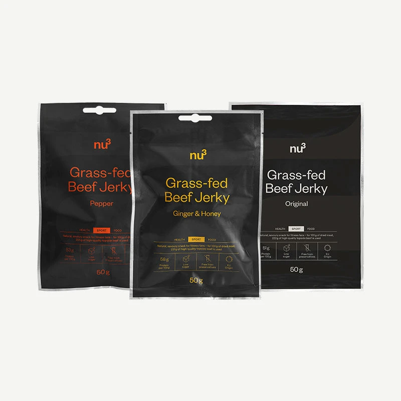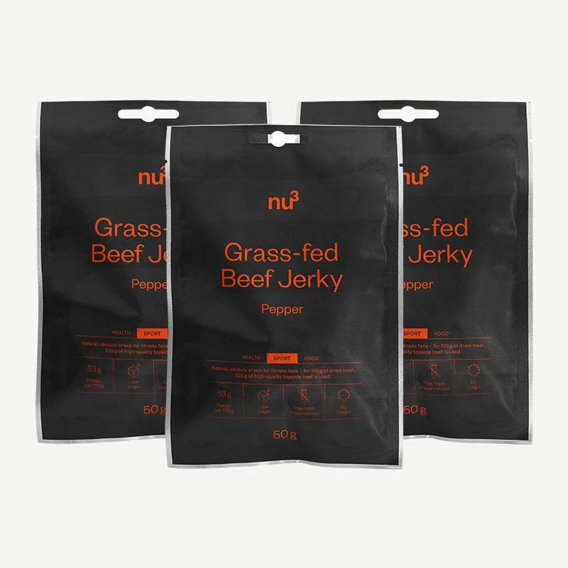 nu3 Beef Jerky : votre snack protéiné salé à emporter à partir du meilleur bœuf et d’épices relevées.