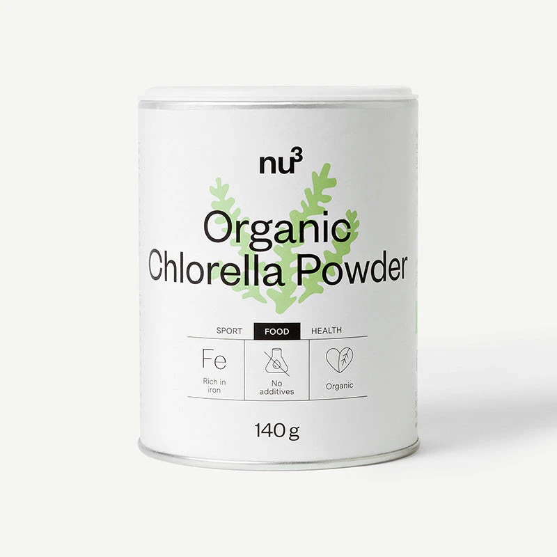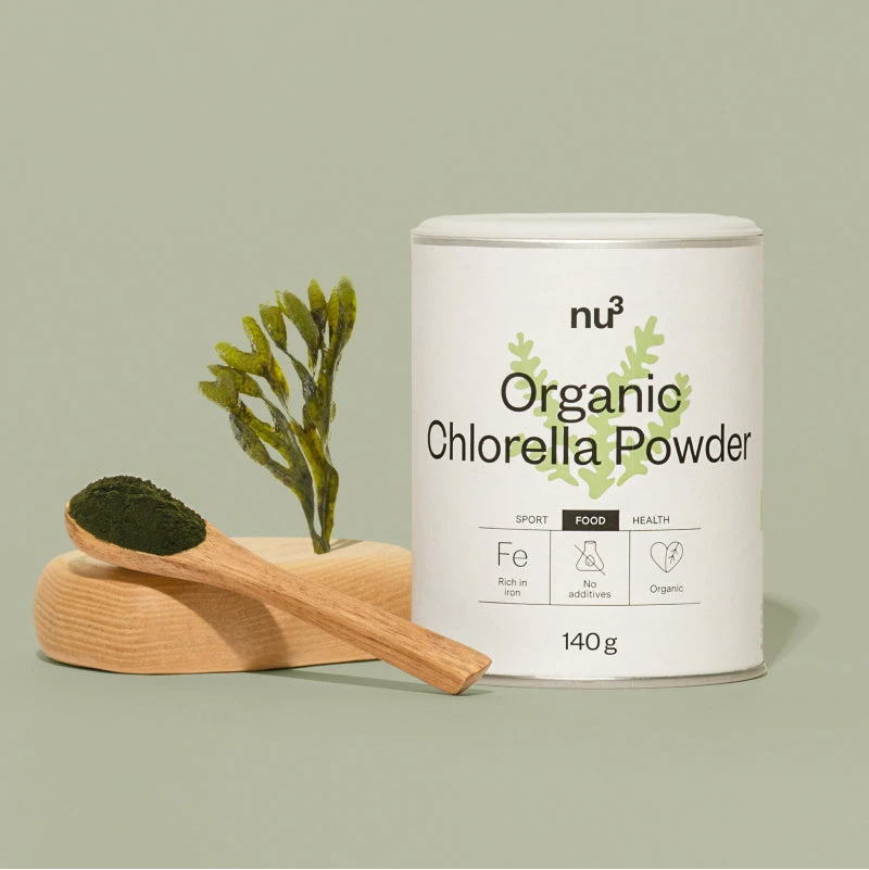 nu3 Poudre de chlorella bio : 100% pure poudre bio contenant naturellement du fer. Achetez maintenant de la chlorella chez nu3 !