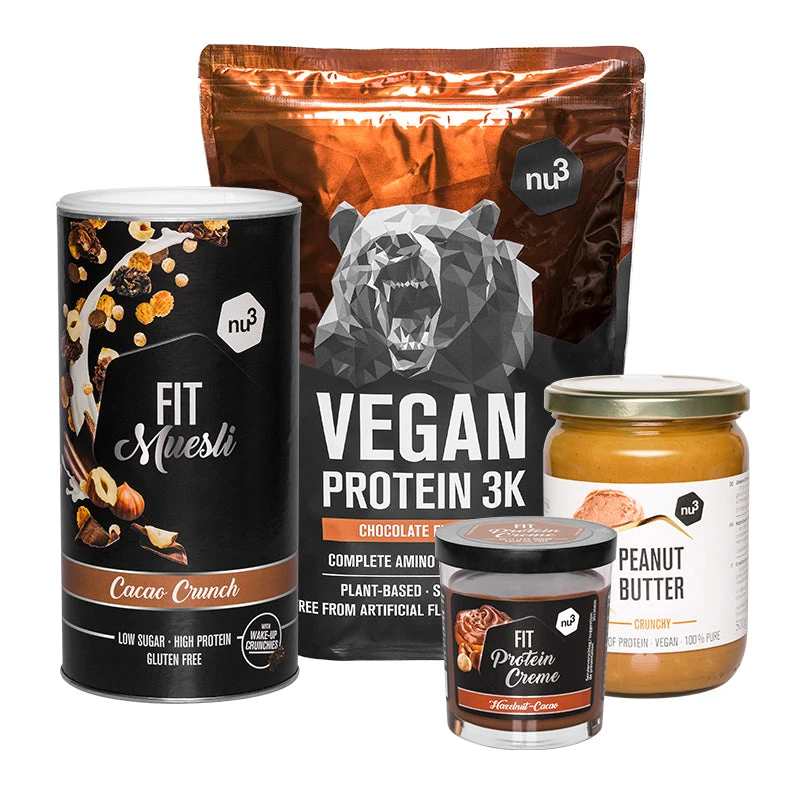 Tous vos produits nu3 favoris réunis en un seul pack pratique ! Commandez le Fit Muesli, les Vegan Protein 3K, la Fit Protein Crème & le peanut butter.