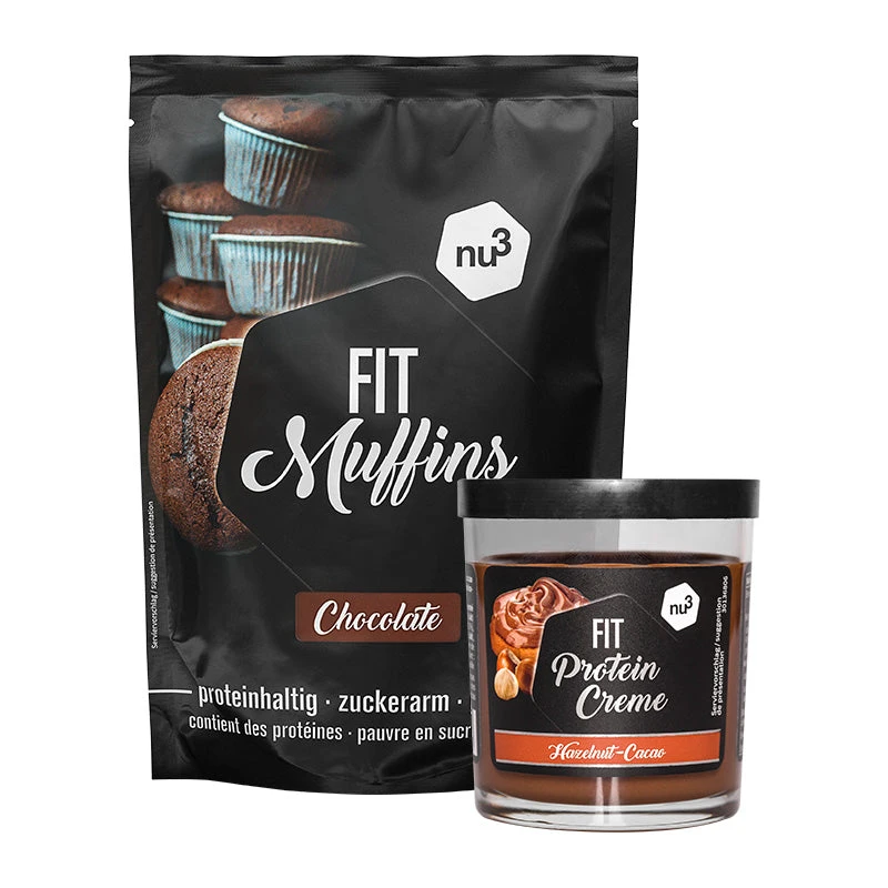 Pack super chocolaté : préparation pour muffins protéinés avec la pâte à tartiner choco-noisette pauvre en sucre et hyperprotéinée, maintenant sur nu3 !