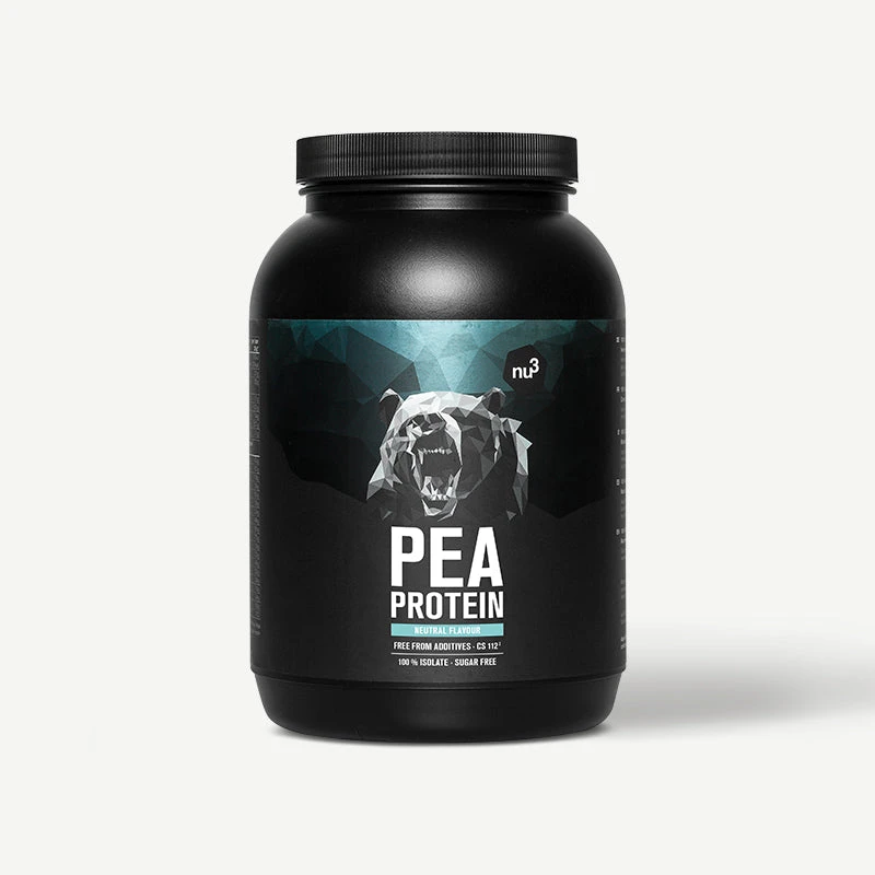 Proteine del pisello naturali e vegane con 24 g di proteine di alta qualità per porzione – senza aromi, dolcificanti o altri additivi, ora da nu3 !