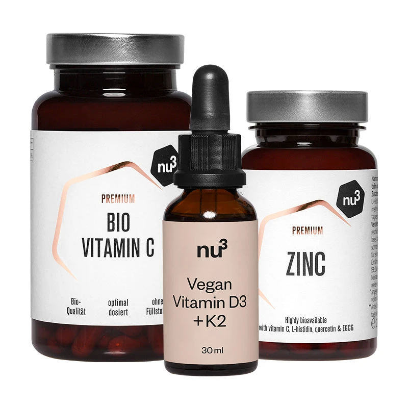 Pack avec zinc, vitamine C bio et gouttes de vitamine D. Les nutriments contribuent au fonctionnement normal du système immunitaire. Achetez maintenant !